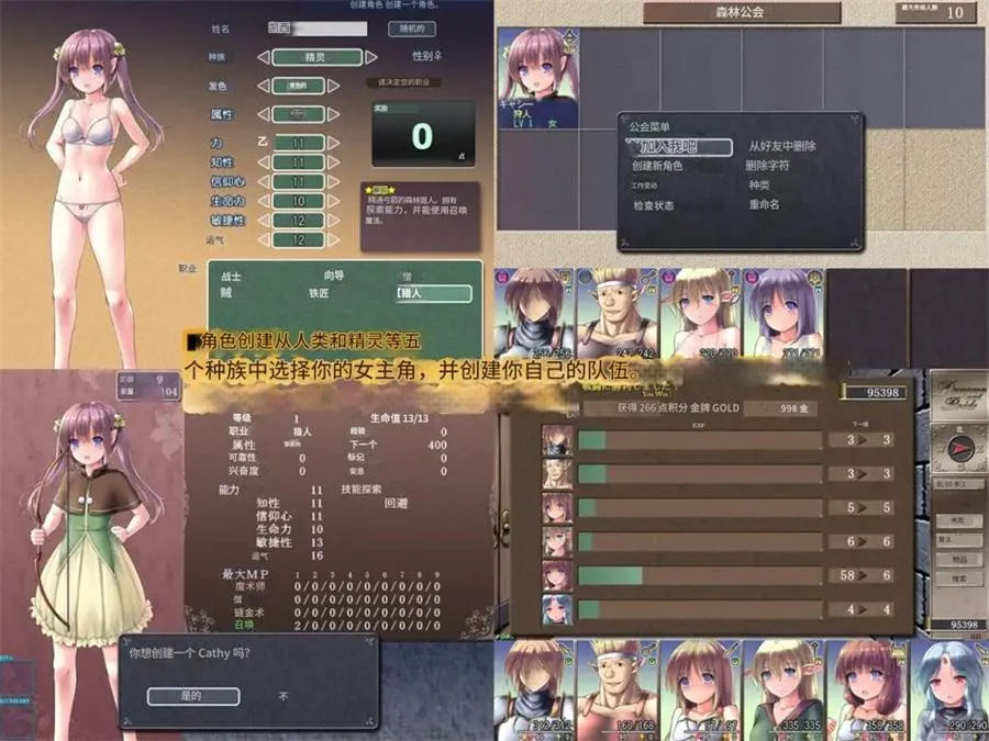 从人类、精灵等5个种族中选择,决定角色的名字、发色、职业等,并可随意将角色注册到公会中。