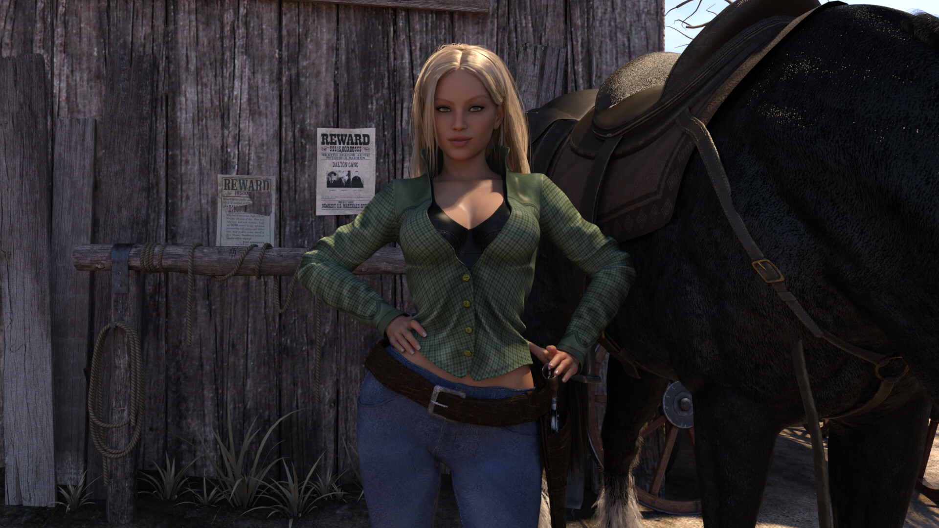 游戏中的多个系统能让你真正感受到自己置身于西部荒野,你可以在森林中捕猎动物、骑马、购买房屋和财产、射击不同类型的枪支,甚至成为一名警长!+18 动画也是完全交互式的,您可以选择切换移动速度、不同的摄像机角度、放大和缩小,甚至在特定场景中改变位置。所有画面均以全高清(1980×1020)渲染。